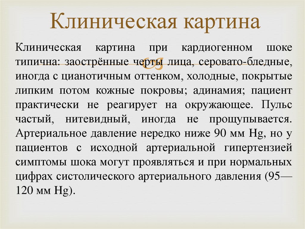 Клиническая картинаКлиническая картина при кардиогенном шоке