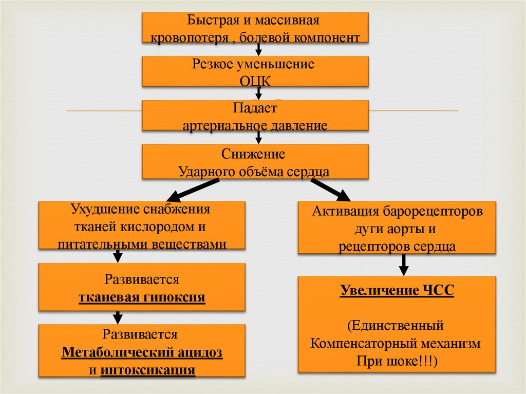 Снижение венозного возврата, ударного объёма сердца, ОПС сосудов