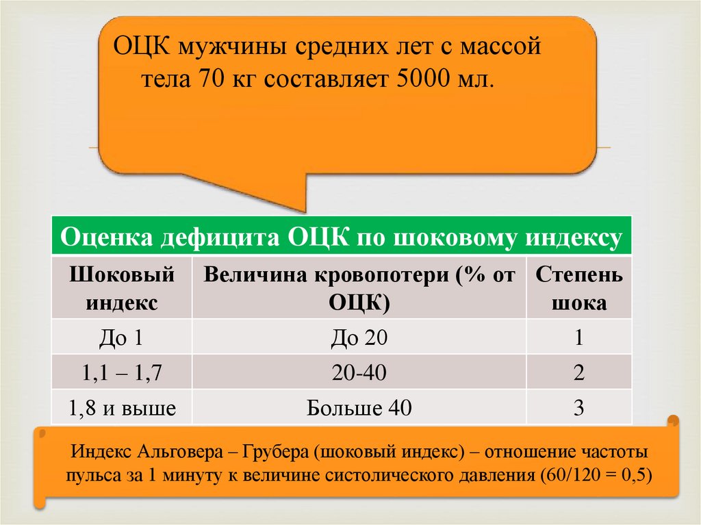 9. Показатели гемодинамики в зависимости от степени тяжести шока
