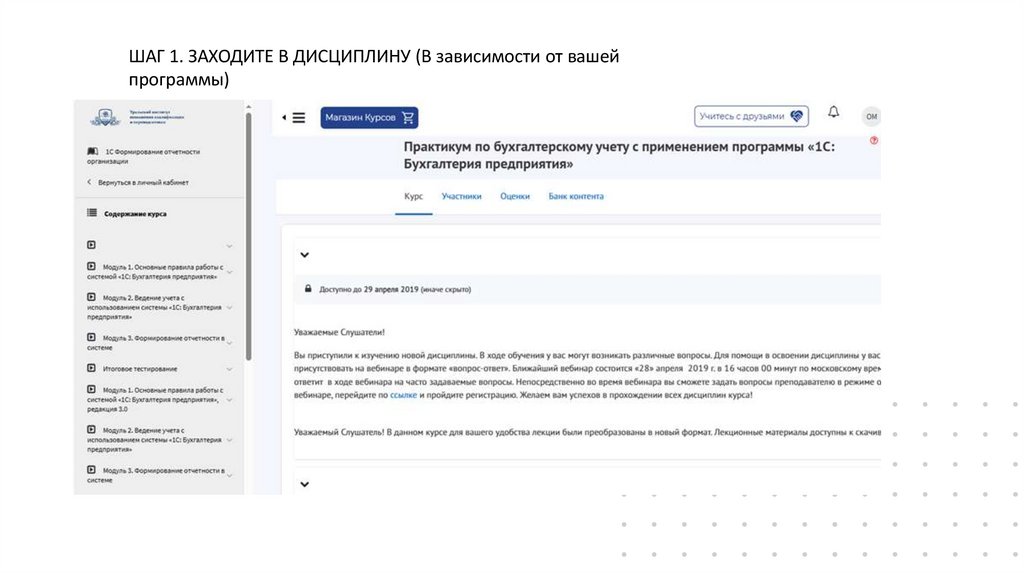 ШАГ 1. ЗАХОДИТЕ В ДИСЦИПЛИНУ (В зависимости от вашейпрограммы)
