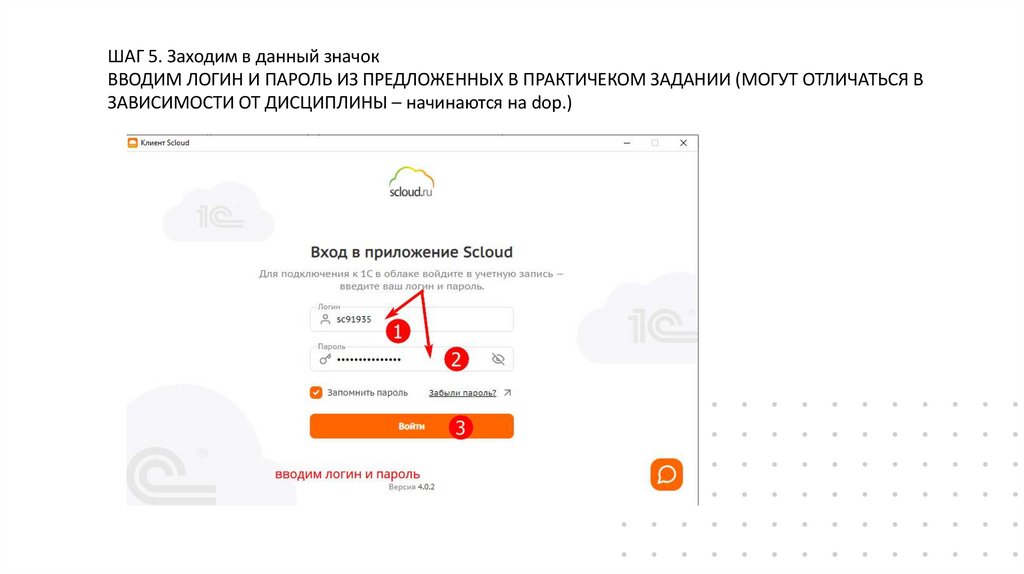 ШАГ 5. Заходим в данный значокВВОДИМ ЛОГИН И ПАРОЛЬ ИЗ ПРЕДЛОЖЕННЫХ В ПРАКТИЧЕКОМ ЗАДАНИИ (МОГУТ ОТЛИЧАТЬСЯ В