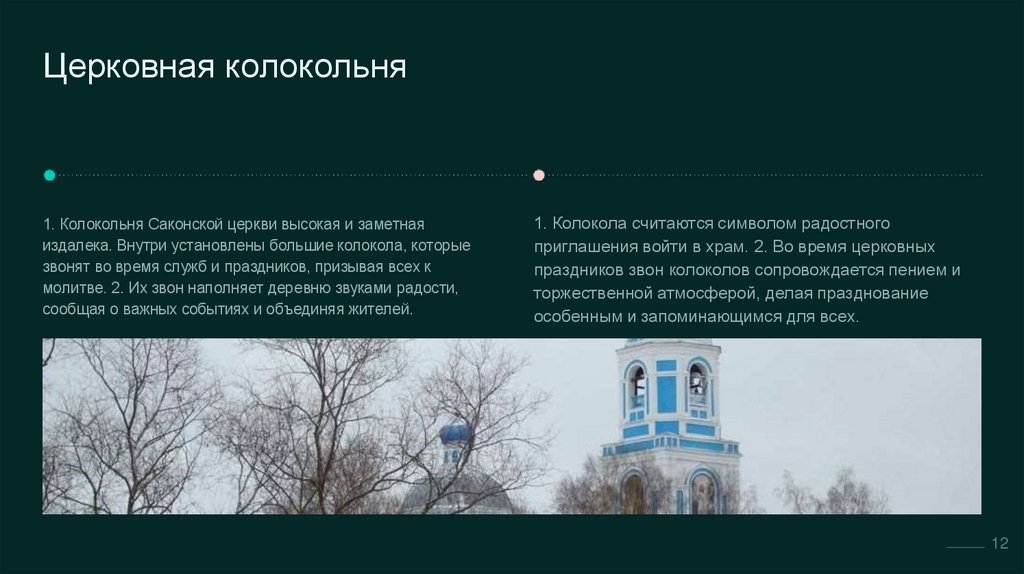 молитве. 2. Их звон наполняет деревню звуками радости,