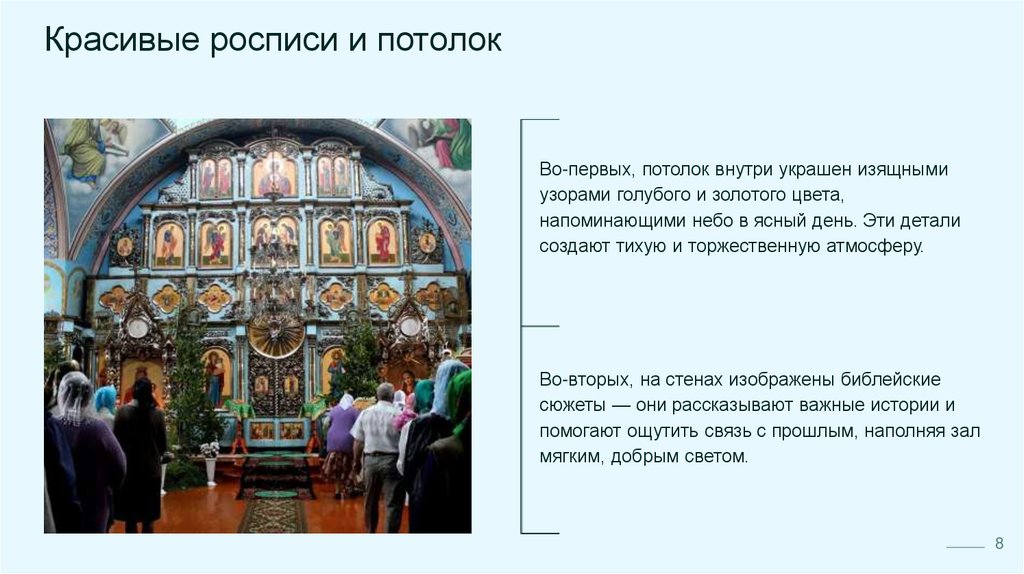 Красивые росписи и потолокВо-первых, потолок внутри украшен изящными