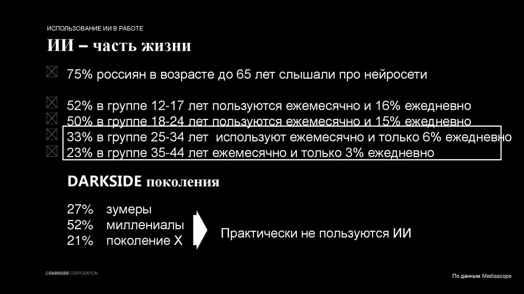 33% в группе 25-34 лет используют ежемесячно и только 6% ежедневно