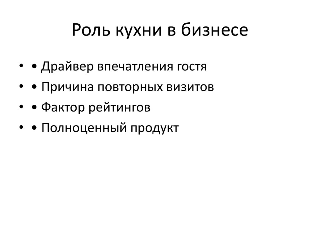 Роль кухни в бизнесе• • Драйвер впечатления гостя