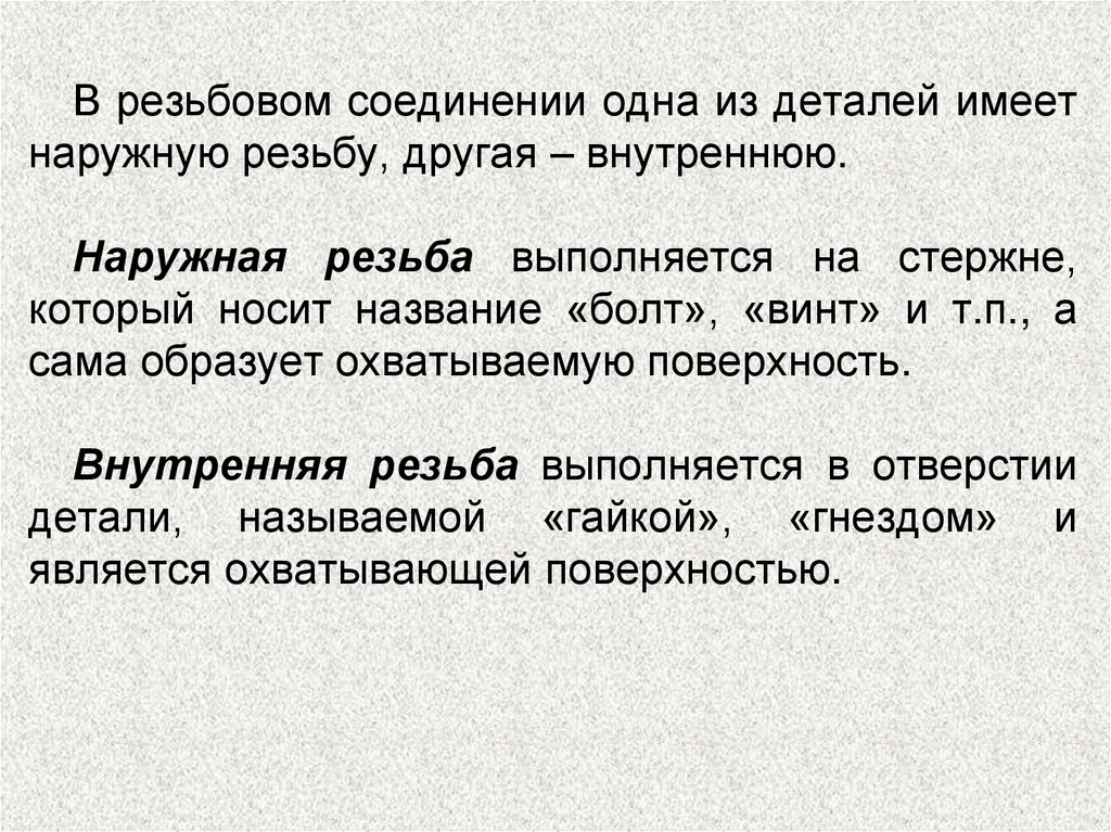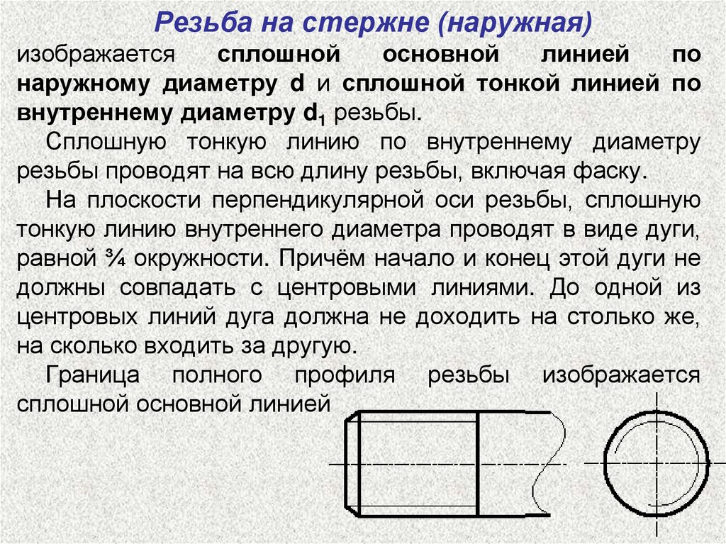 стержне или в отверстии. Для наружной резьбы