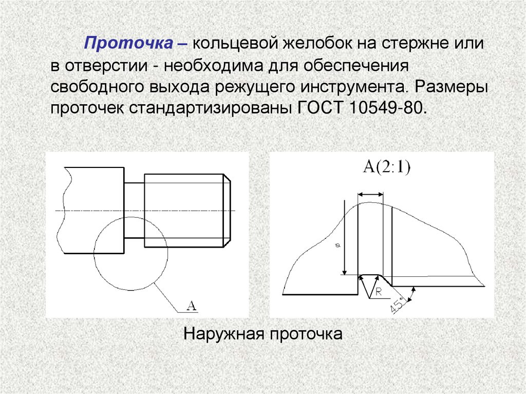 Проточка – кольцевой желобок на стержне илив отверстии - необходима для обеспечения