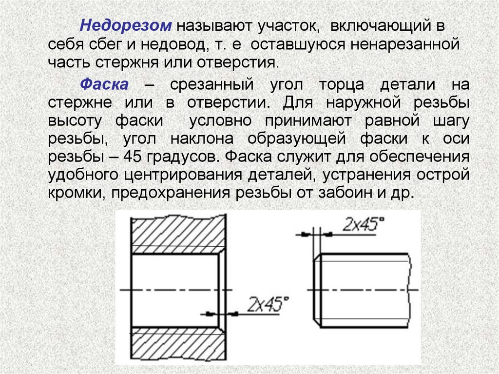 резьбы – 45 градусов. Фаска служит для обеспечения