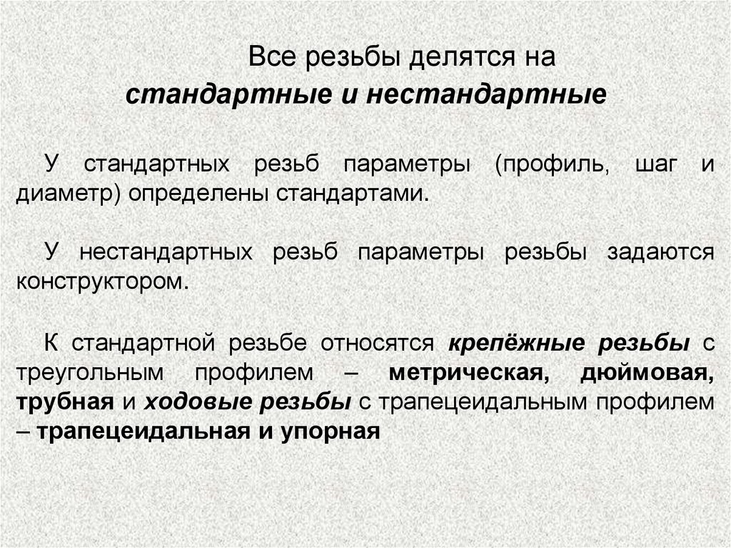 Все резьбы делятся настандартные и нестандартные