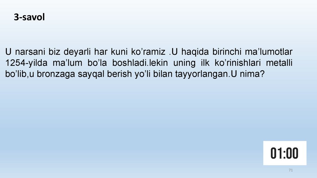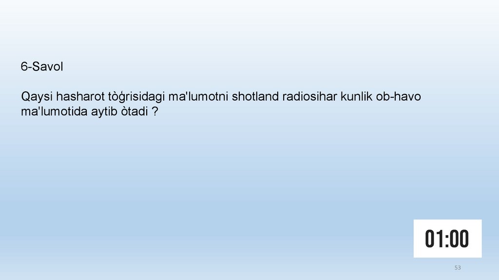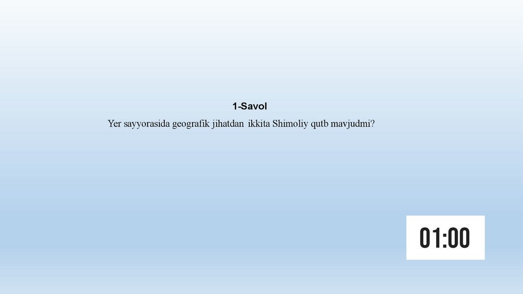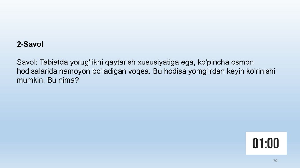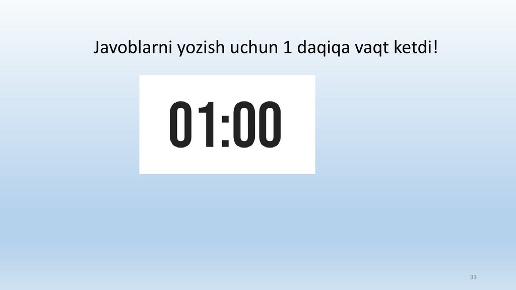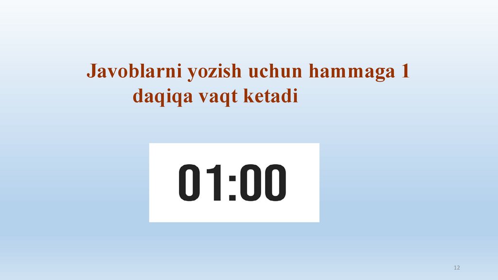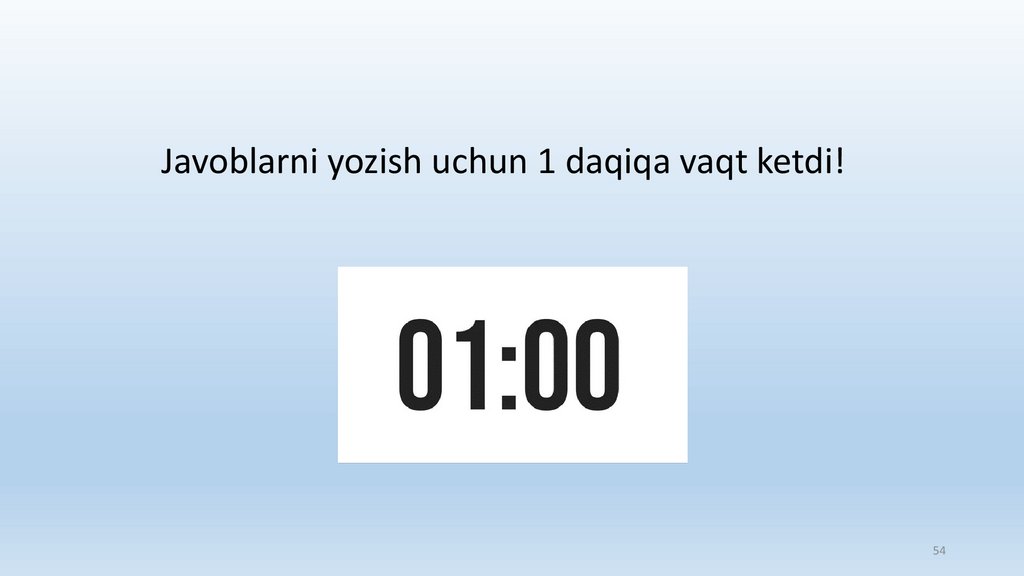 Javoblarni yozish uchun hammaga 1daqiqa vaqt ketadi