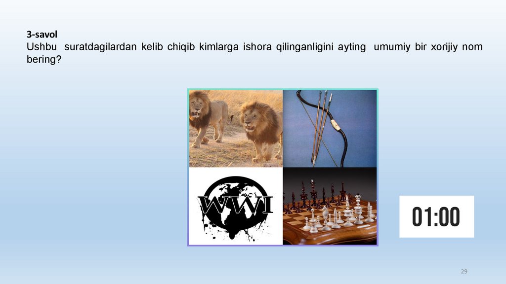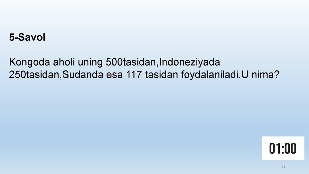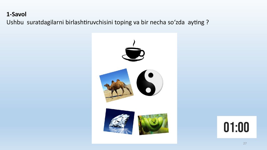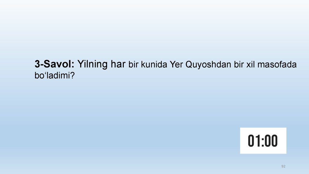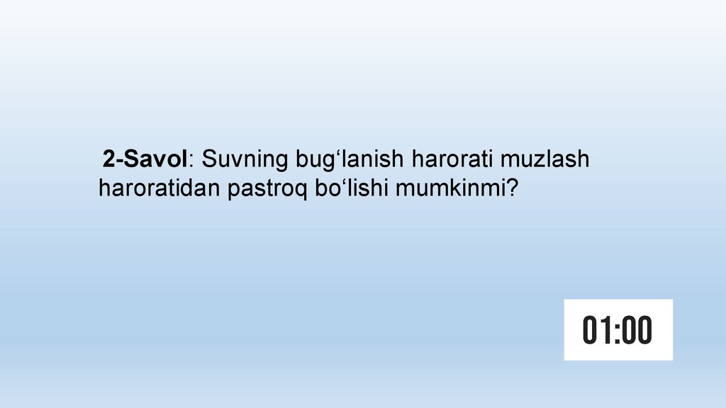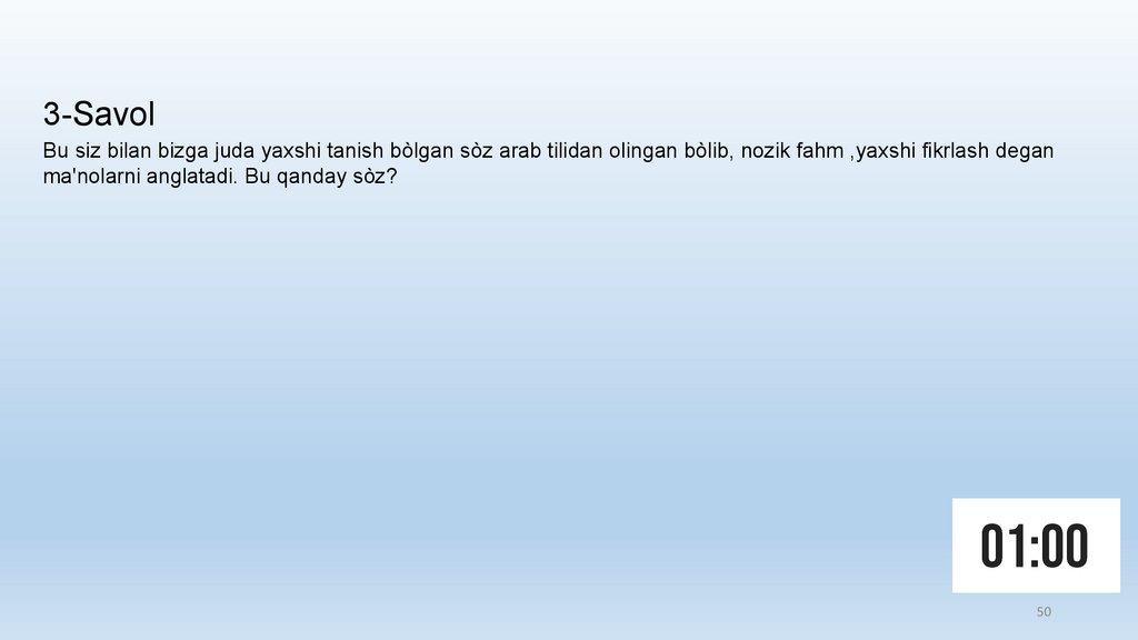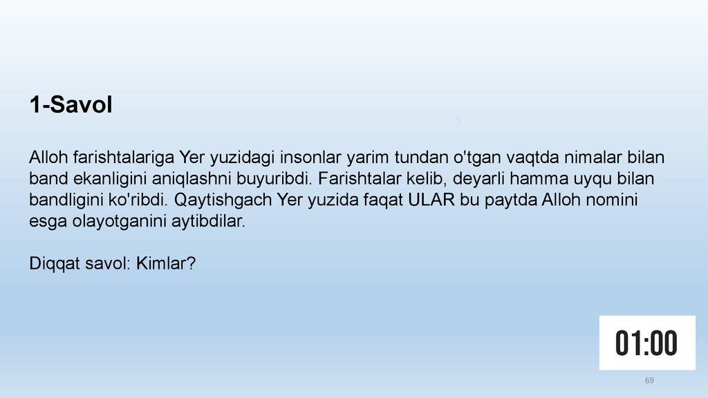 Javoblarni yozish uchun hammaga 1daqiqa vaqt ketadi