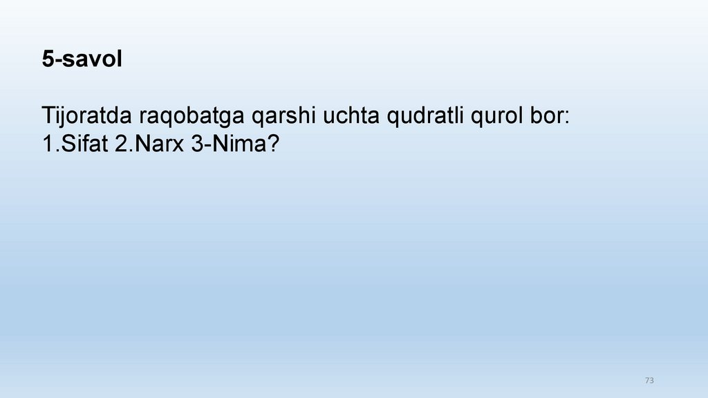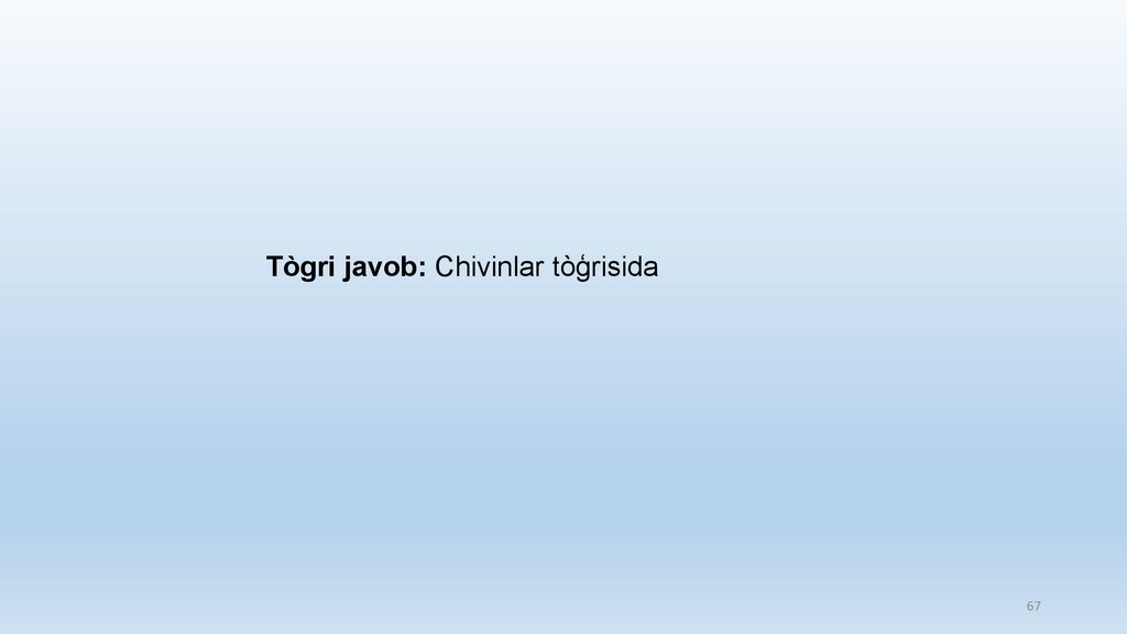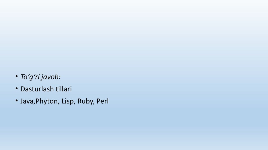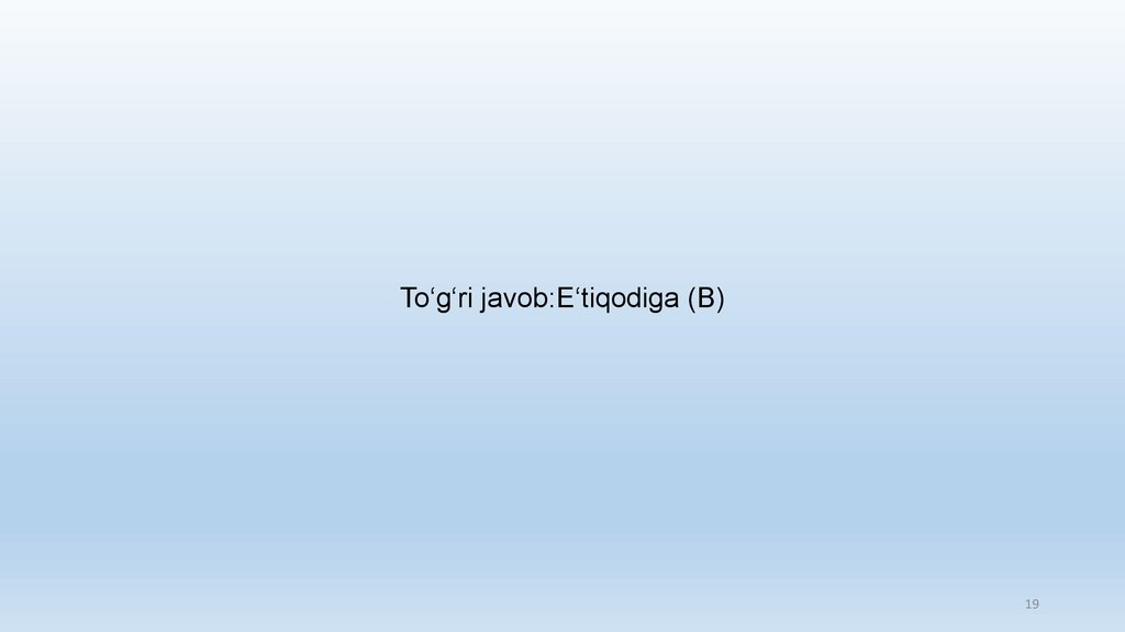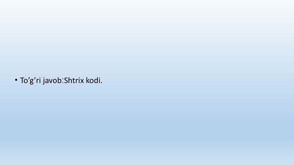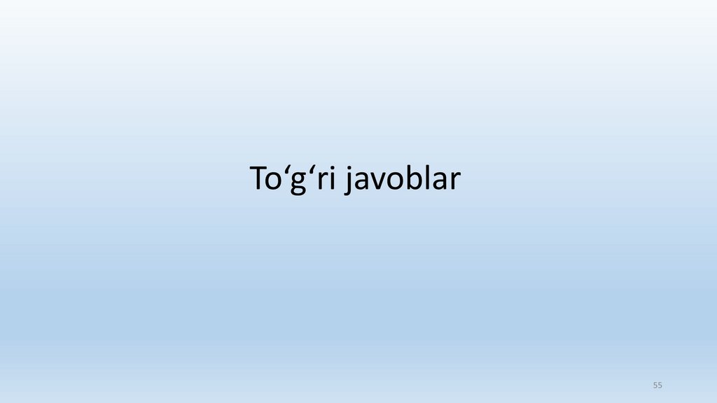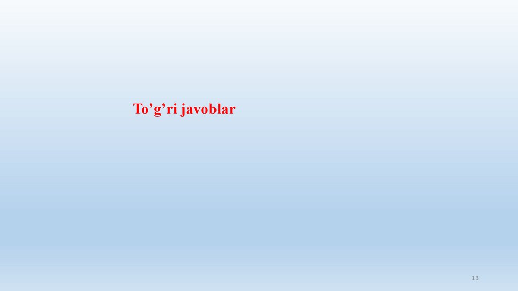 -har bir tog’ri javob uchun 1 balldan beriladi;