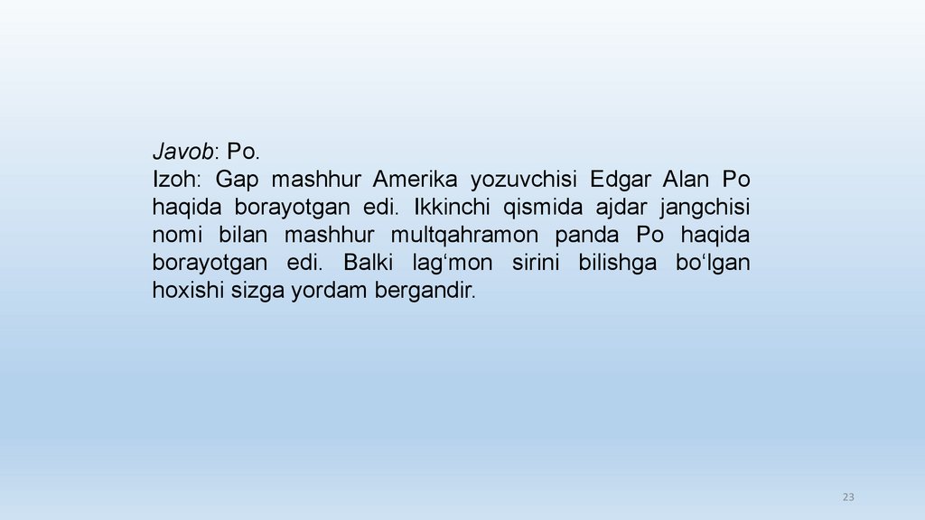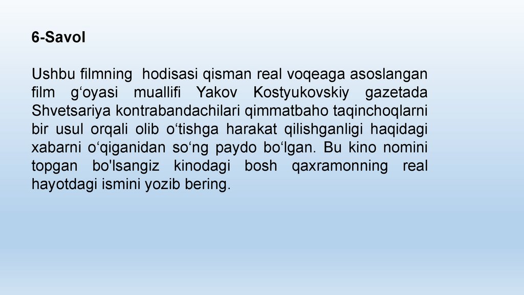 bilish edi. Sizlar xohlasangiz yozuvchining ismini yoki oʻsha