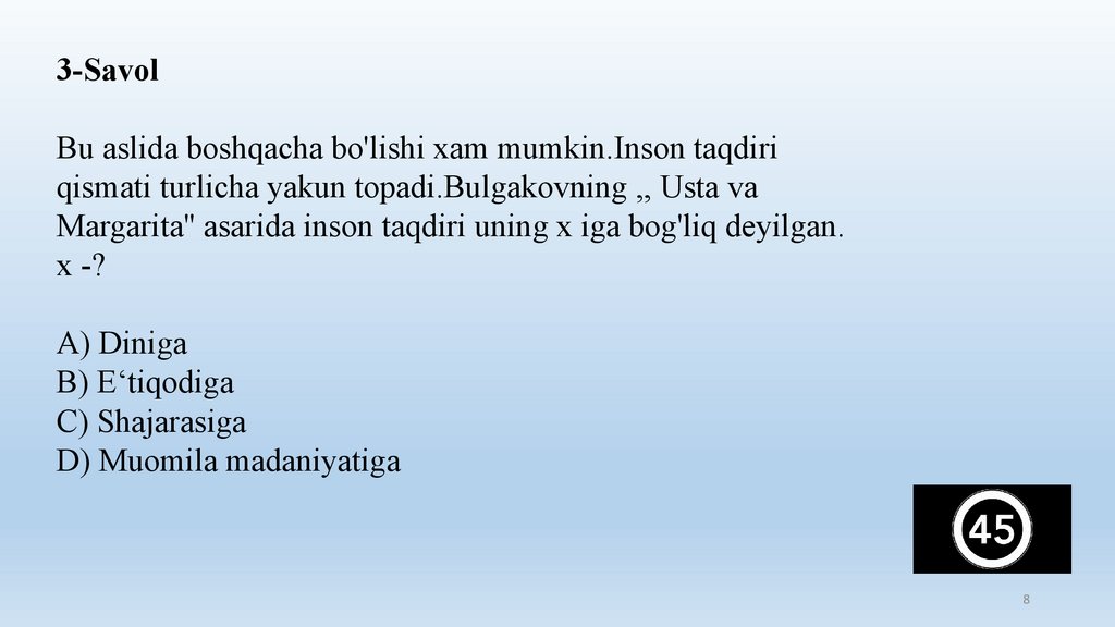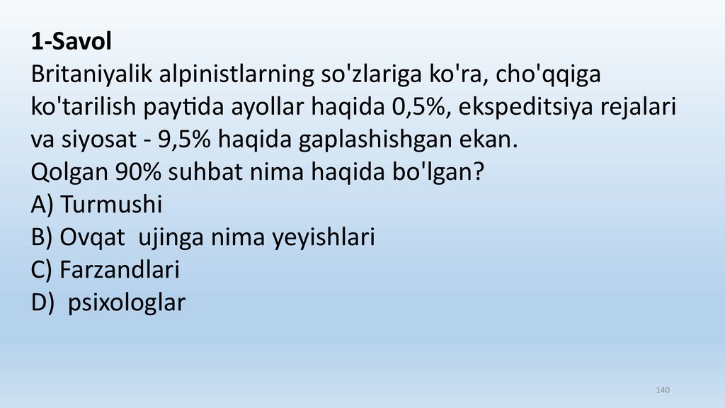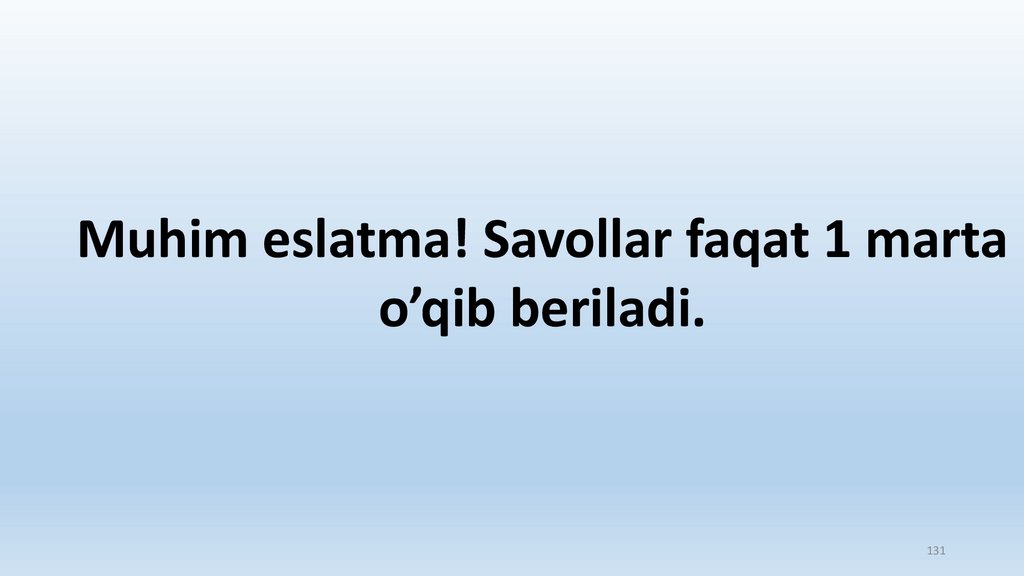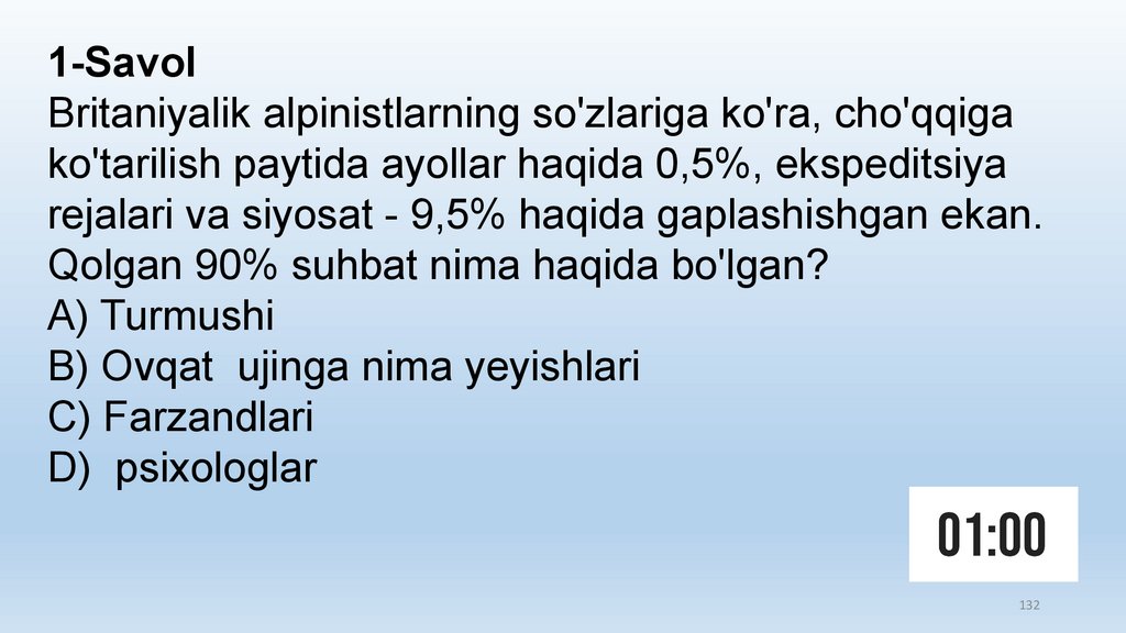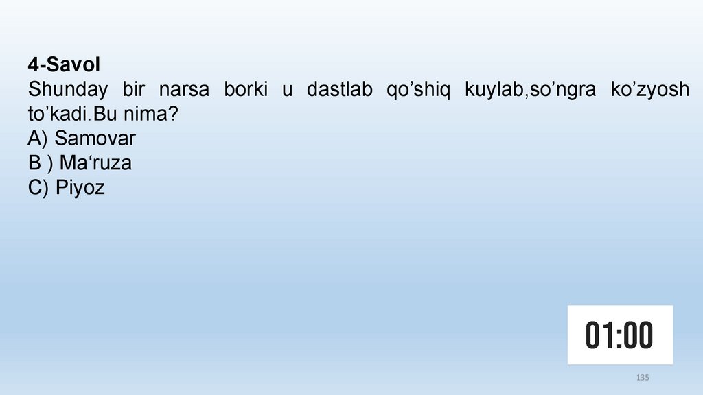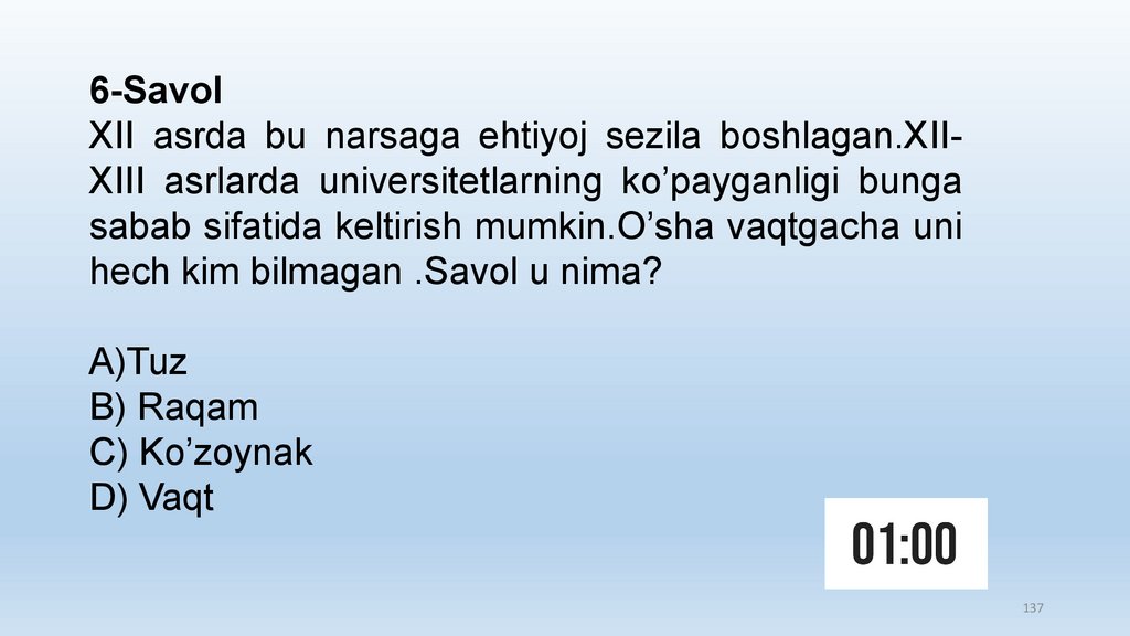 Javoblarni yozish uchun 1 daqiqa vaqt ketdi!138