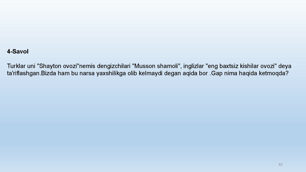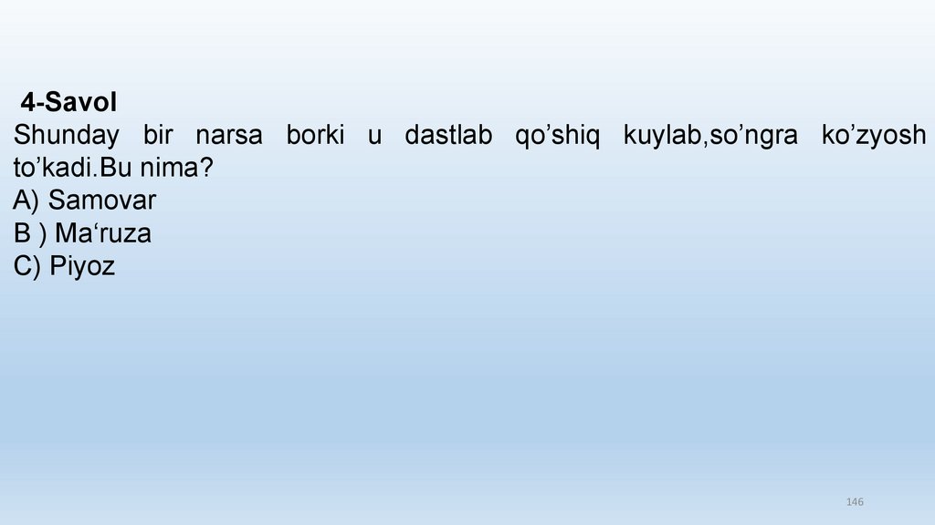 4-SavolShunday bir narsa borki u dastlab qo’shiq kuylab,so’ngra ko’zyosh