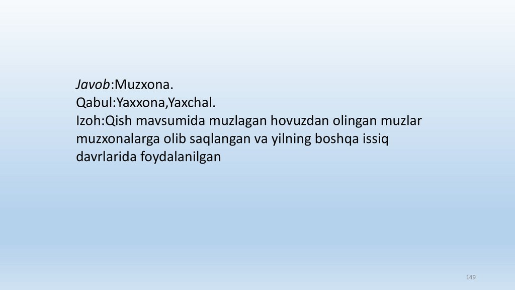 Javob:Muzxona.Qabul:Yaxxona,Yaxchal.