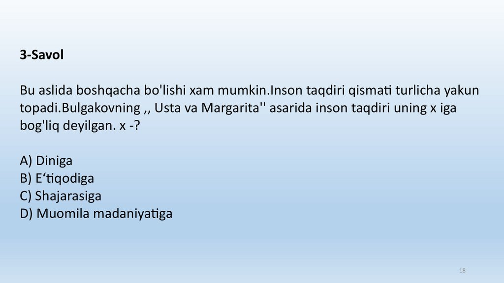 3-SavolBu aslida boshqacha bo'lishi xam mumkin.Inson taqdiri