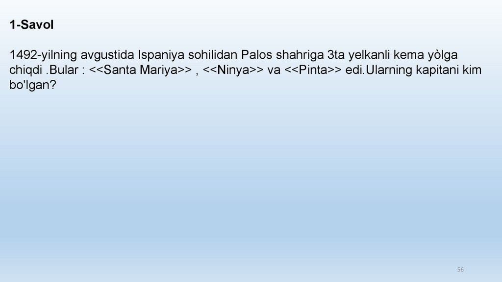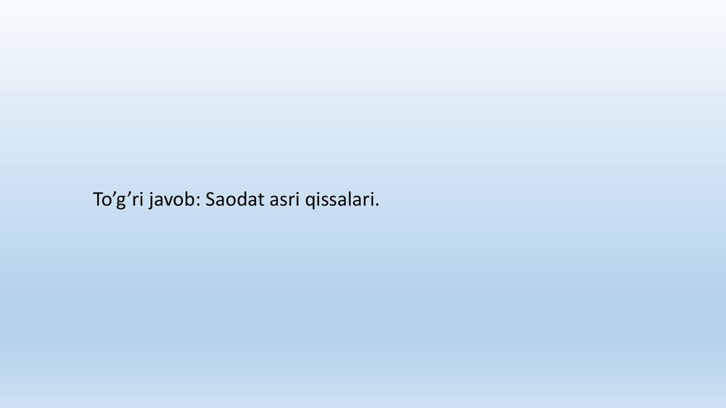 sifatida keltirish mumkin.O’sha vaqtgacha uni hech kim