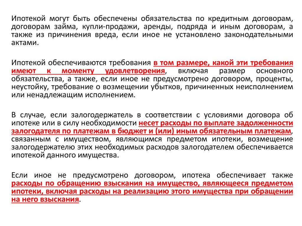 Ипотекой обеспечиваются требования в том размере, какой эти требования