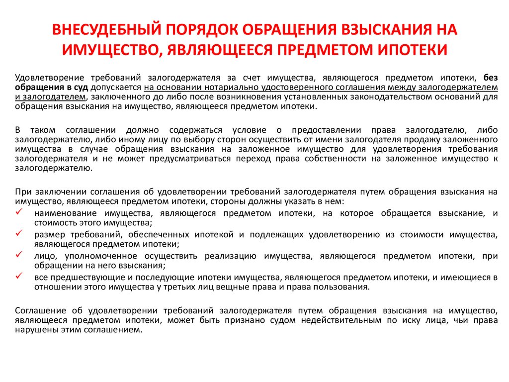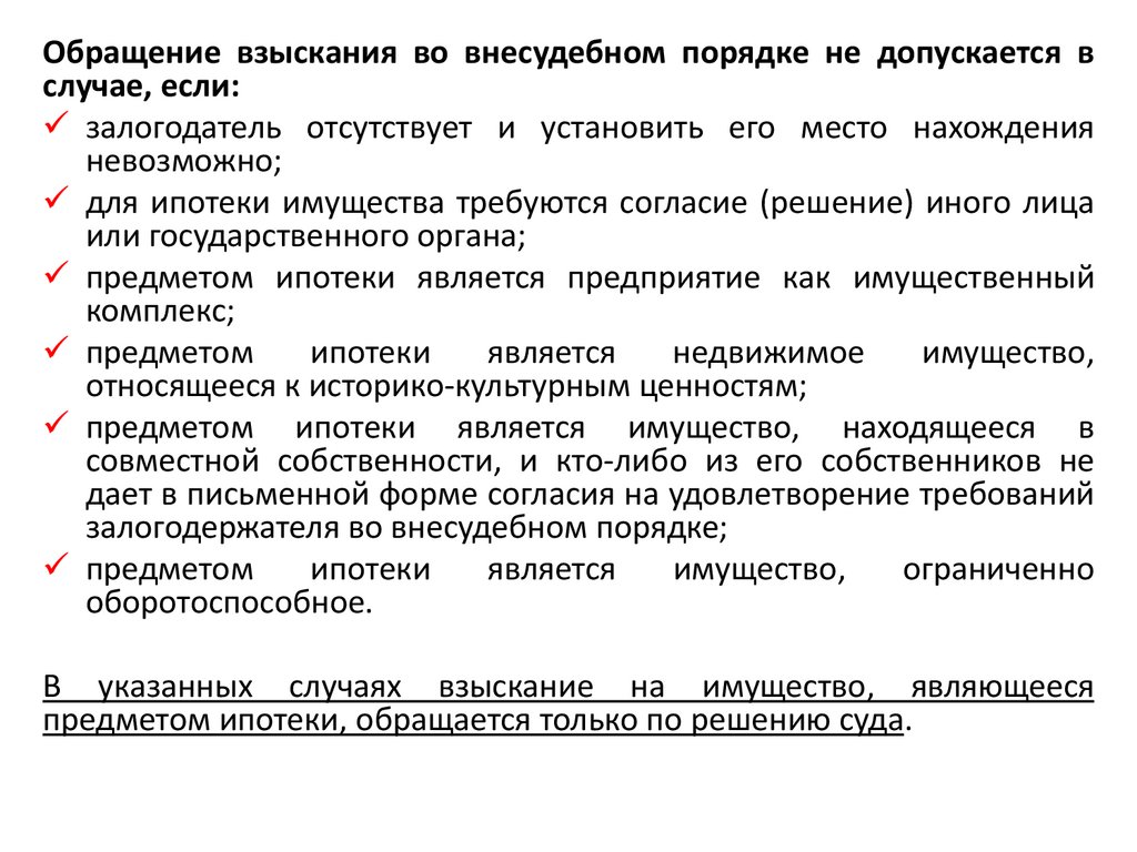 Обращение взыскания во внесудебном порядке не допускается вслучае, если: