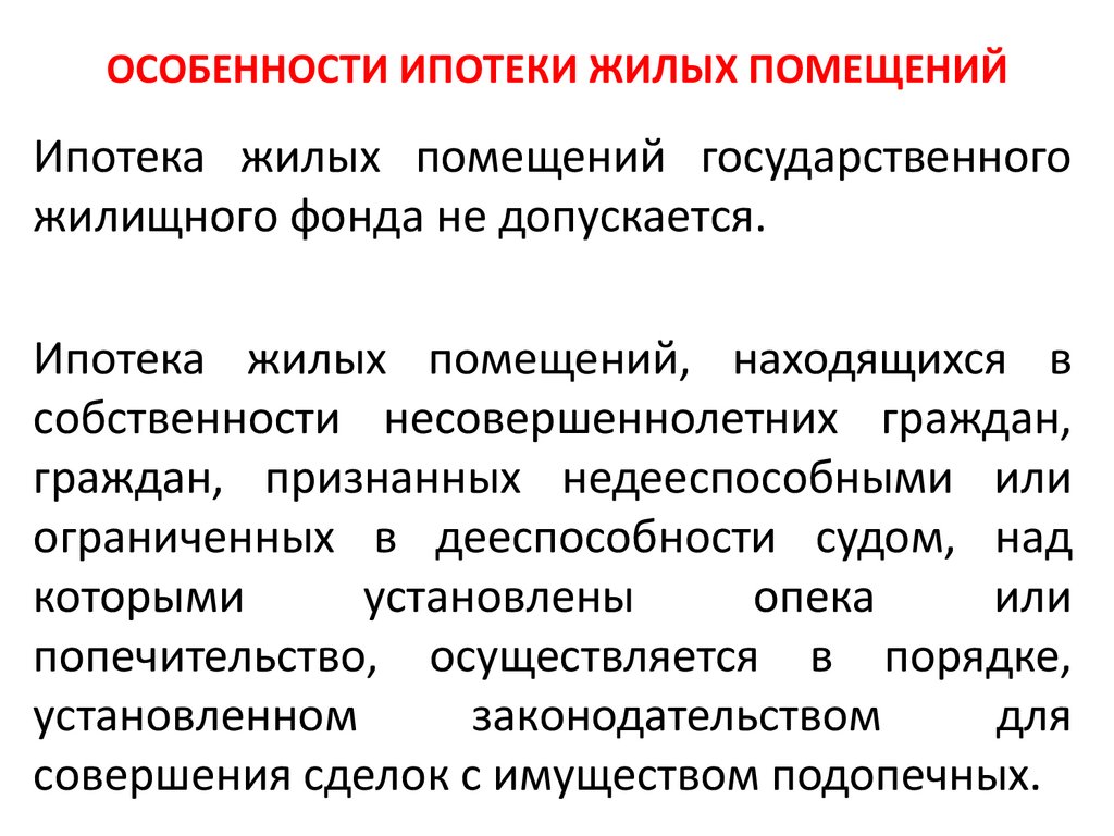 ОСОБЕННОСТИ ИПОТЕКИ ЖИЛЫХ ПОМЕЩЕНИЙИпотека жилых помещений государственного