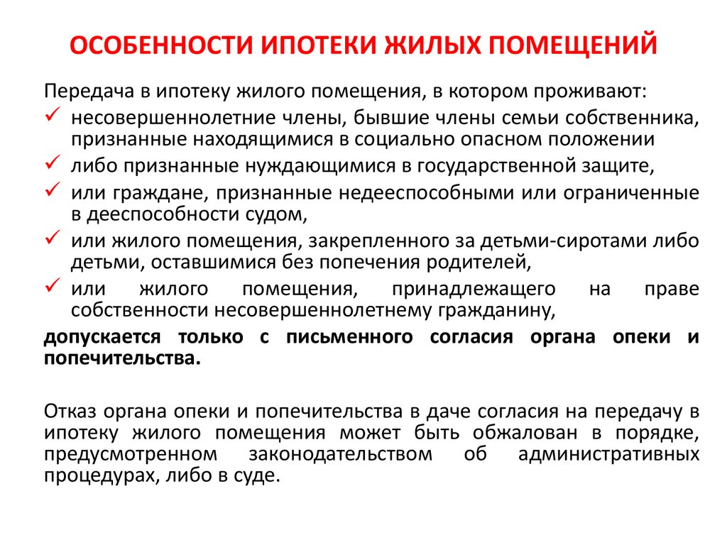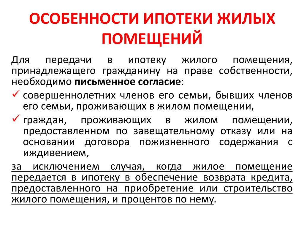 ОСОБЕННОСТИ ИПОТЕКИ ЖИЛЫХ ПОМЕЩЕНИЙПередача в ипотеку жилого помещения, в котором проживают: