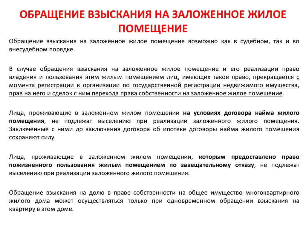 ОБРАЩЕНИЕ ВЗЫСКАНИЯ НА ЗАЛОЖЕННОЕ ЖИЛОЕПОМЕЩЕНИЕ