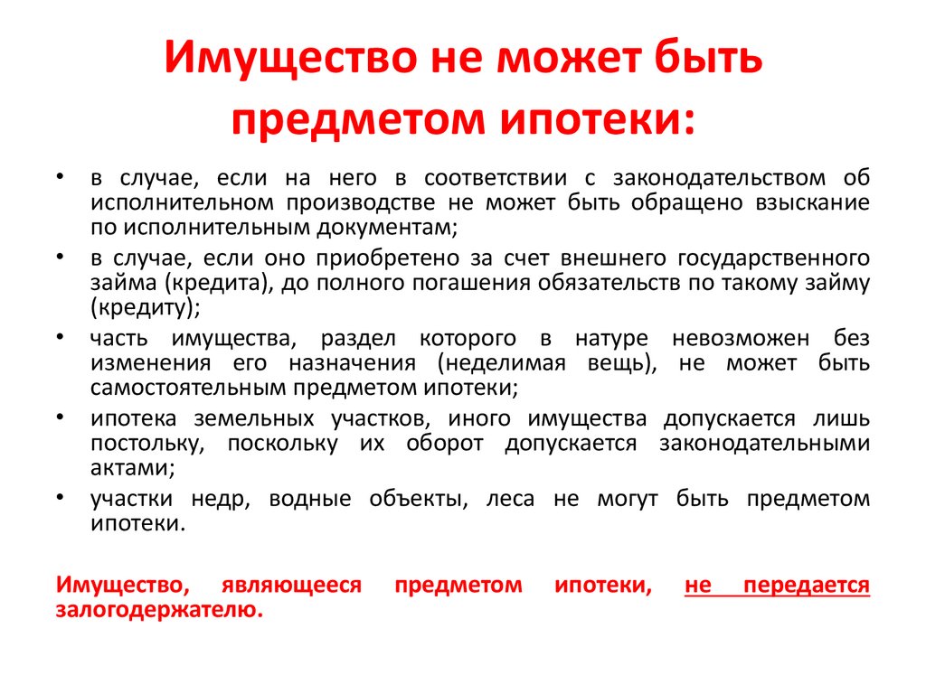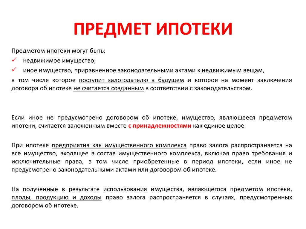 ПРЕДМЕТ ИПОТЕКИПредметом ипотеки могут быть: