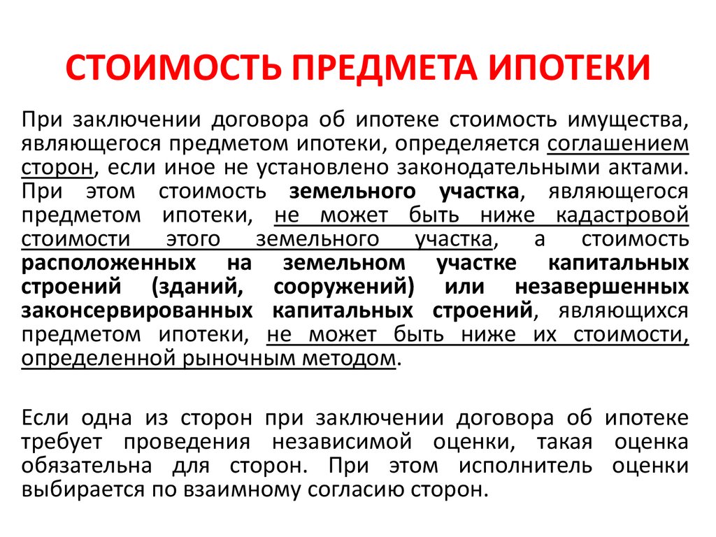 СТОИМОСТЬ ПРЕДМЕТА ИПОТЕКИПри заключении договора об ипотеке стоимость имущества,