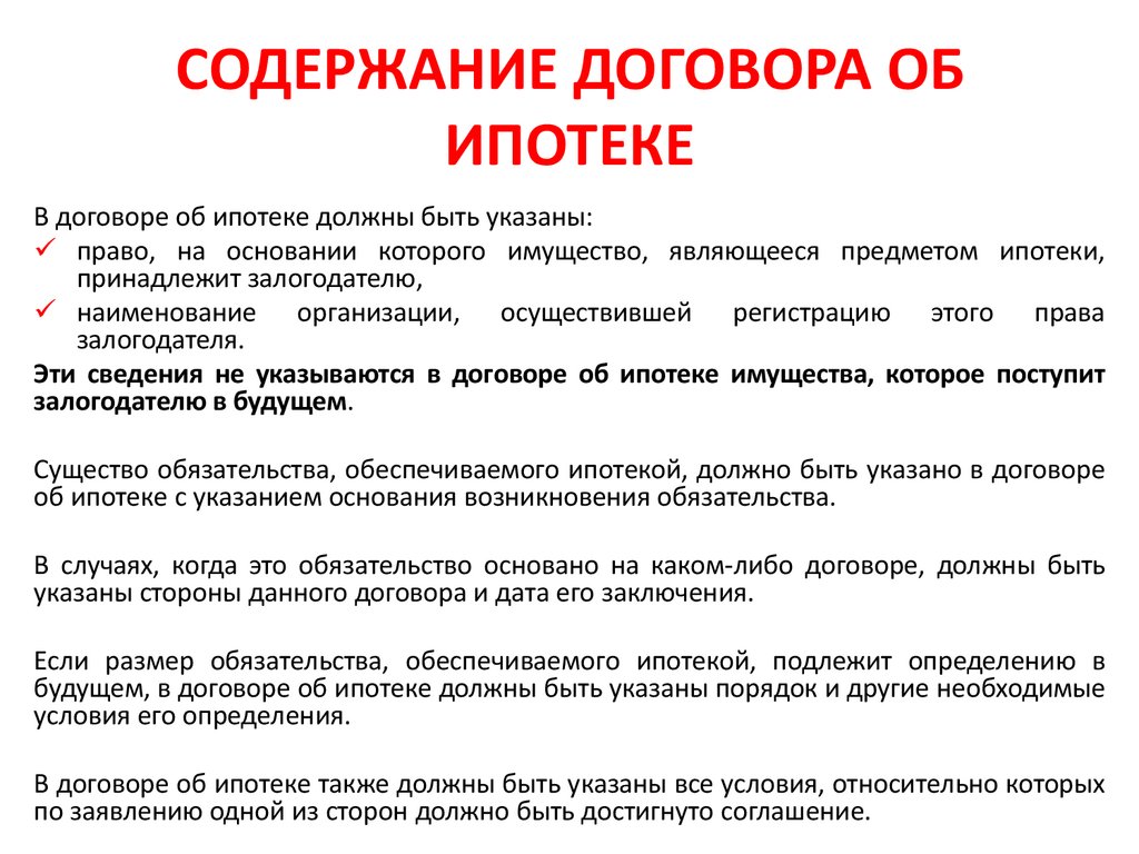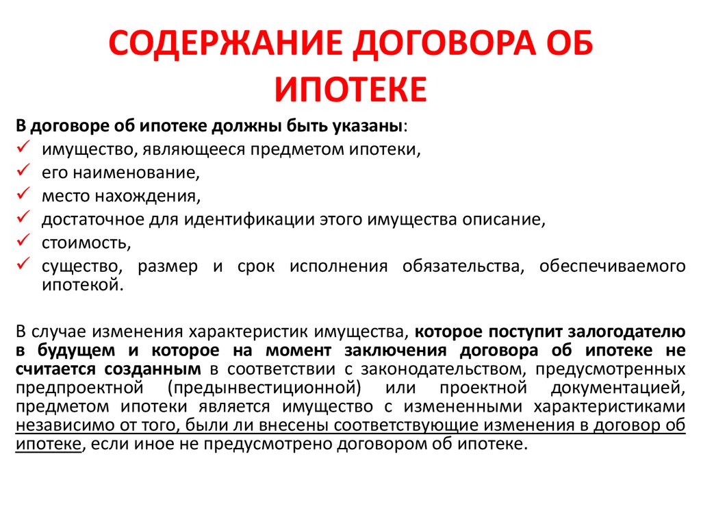 имущество, являющееся предметом ипотеки, стороны должны указать в нем: