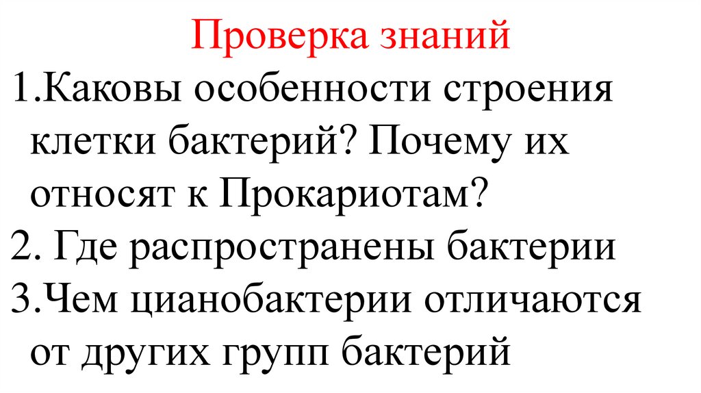 Проверка знаний1.Каковы особенности строения