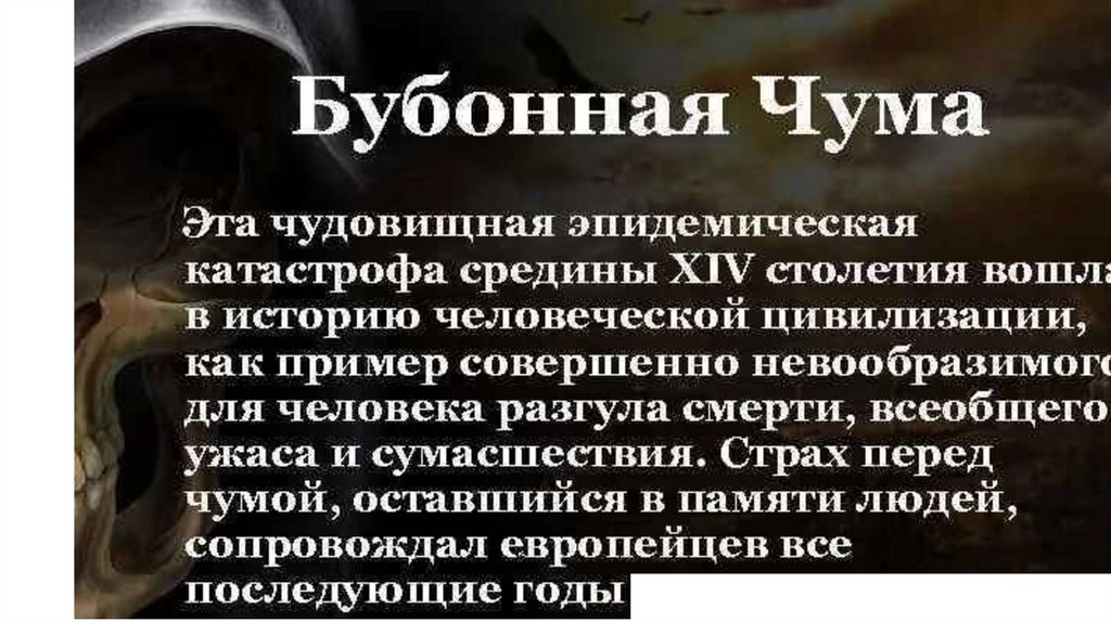 Чума, или «Черная смерть» уничтожилав 14 веке половину населения Европы.