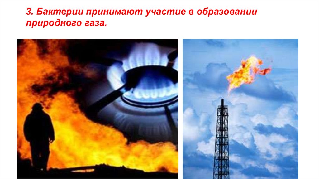 3. Бактерии принимают участие в образованииприродного газа.