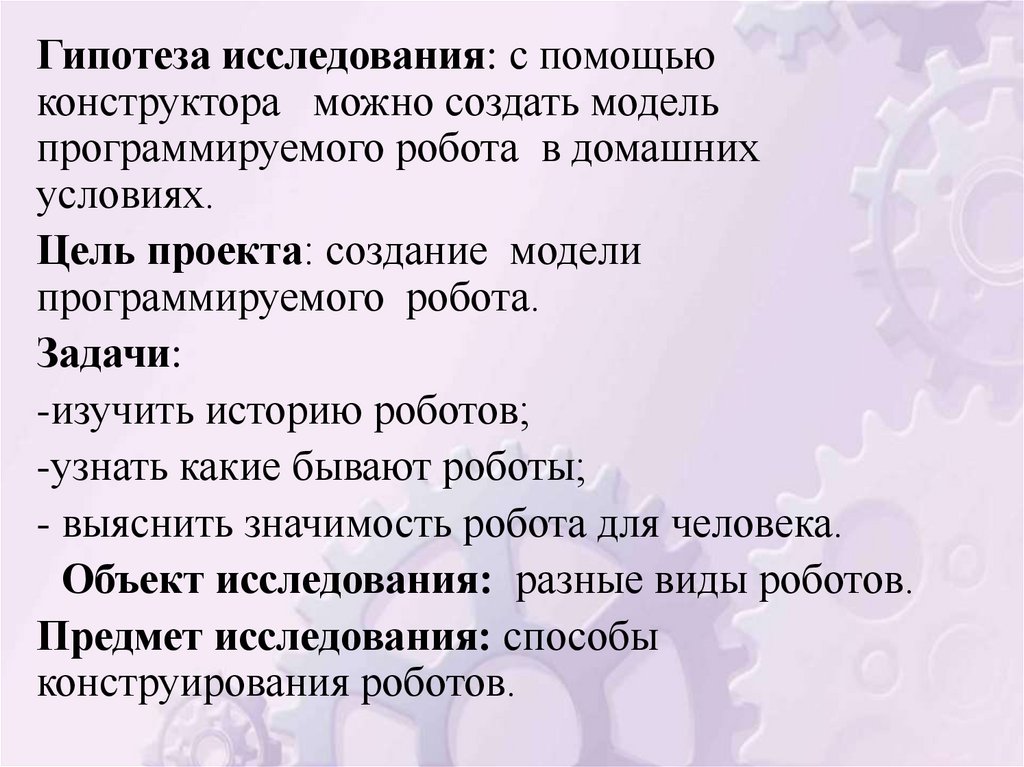 Гипотеза исследования: с помощьюконструктора можно создать модель