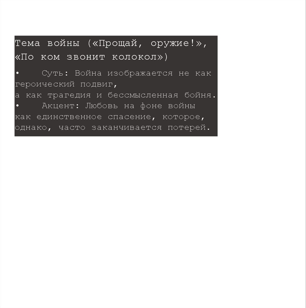 Тема войны («Прощай, оружие!»,«По ком звонит колокол»)