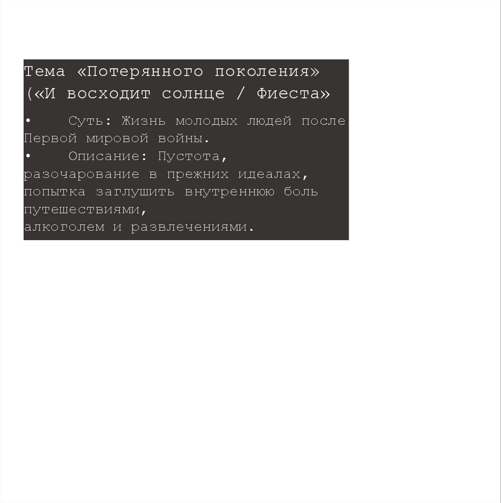 Тема «Потерянного поколения»(«И восходит солнце / Фиеста»