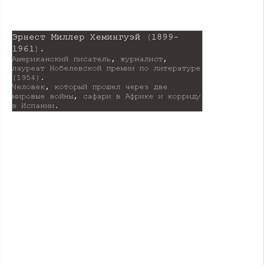 Эрнест Миллер Хемингуэй (18991961).Американский писатель, журналист,