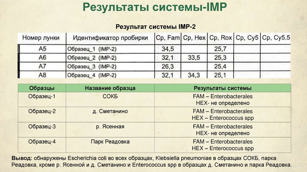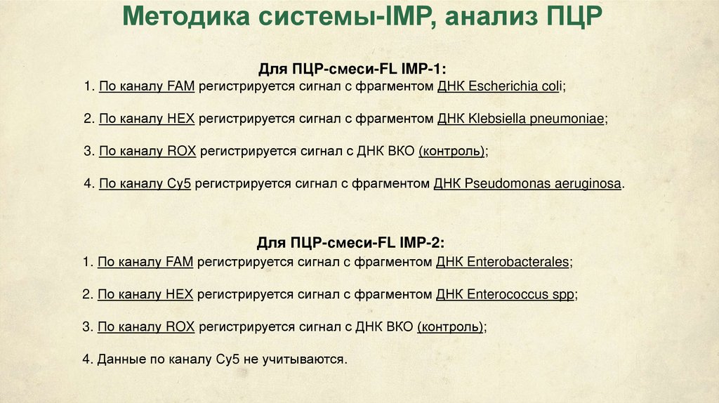 Методика системы-IMP, анализ ПЦРДля ПЦР-смеси-FL IMP-1: