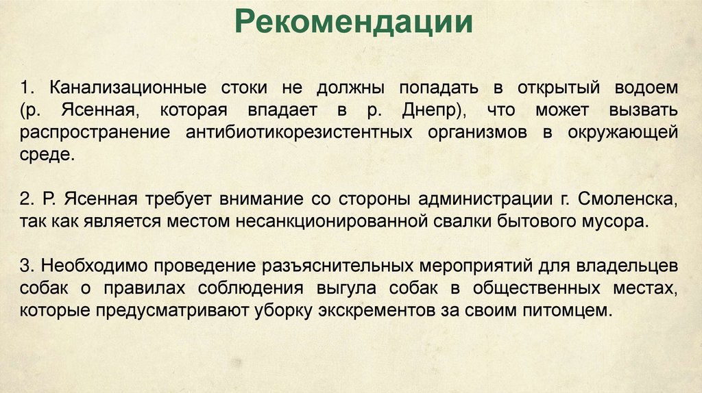 Рекомендации1. Канализационные стоки не должны попадать в открытый водоем