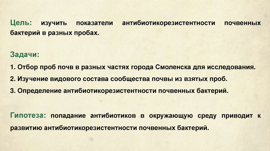Гипотеза: попадание антибиотиков в окружающую среду приводит к