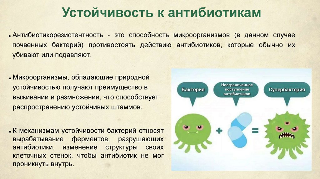 почвенных бактерий) противостоять действию антибиотиков, которые обычно их