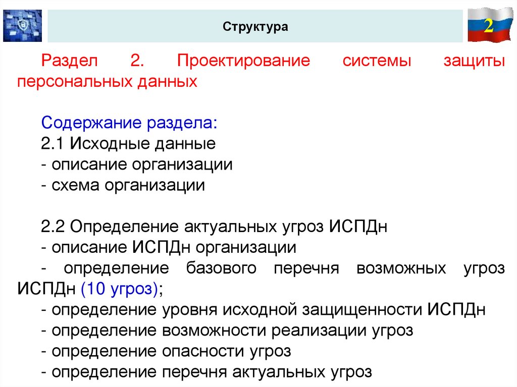 - определение уровня исходной защищенности ИСПДн