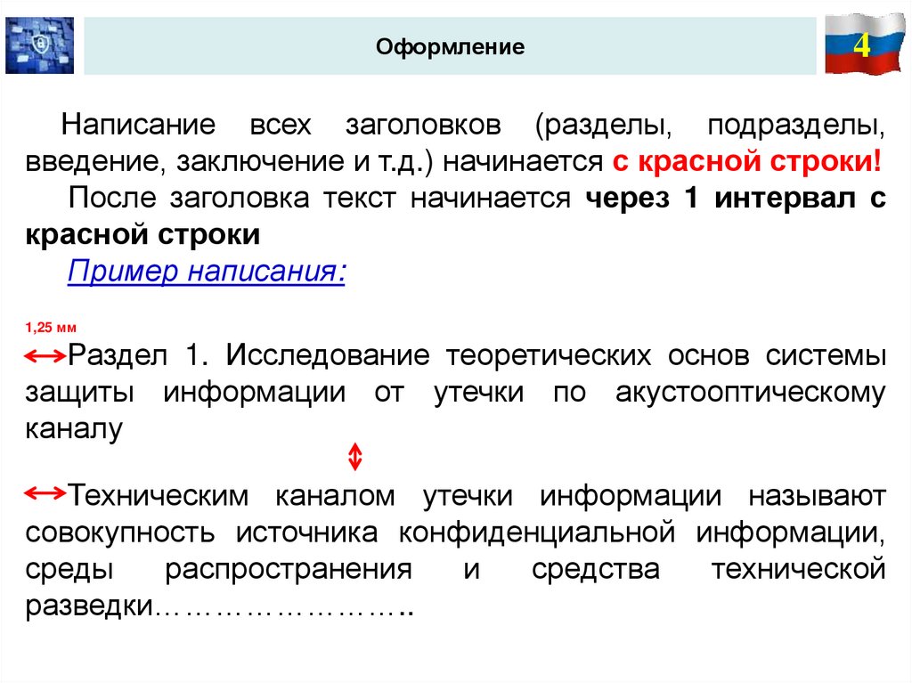 Написание всех заголовков (разделы, подразделы,