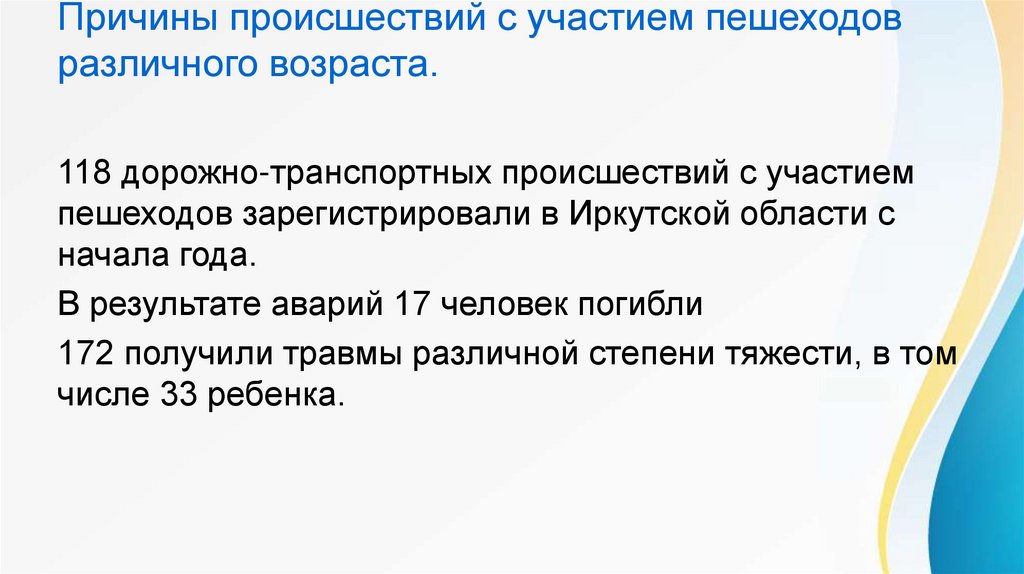 Введение• Проблема исследования – причины дорожно транспортных происшествий с участием пешехода.