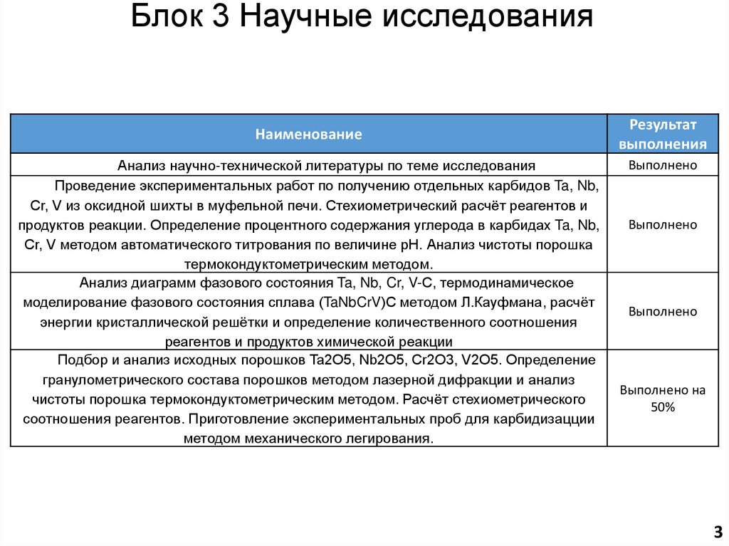 Блок 3 Научные исследованияНаименование
