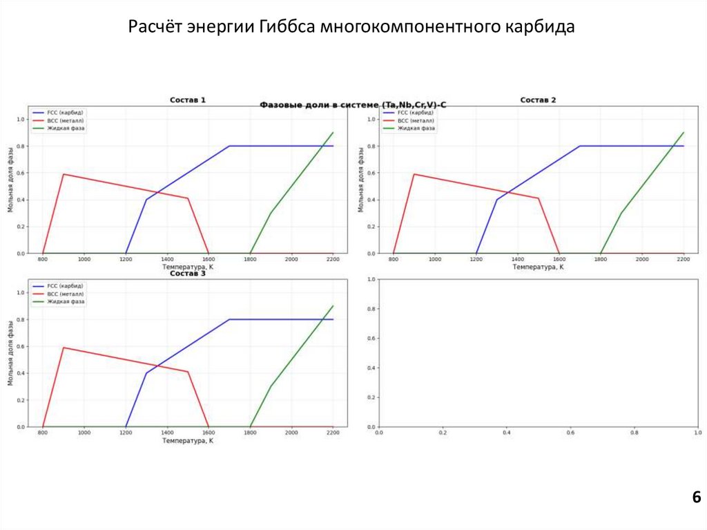 моделирование фазового состояния сплава (TaNbCrV)C методом Л.Кауфмана, расчёт