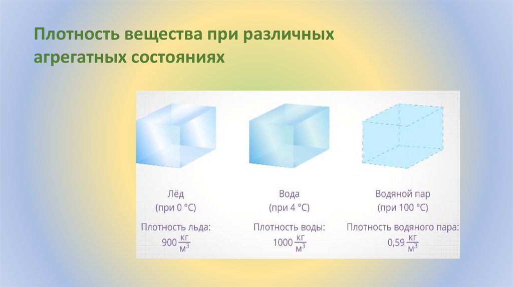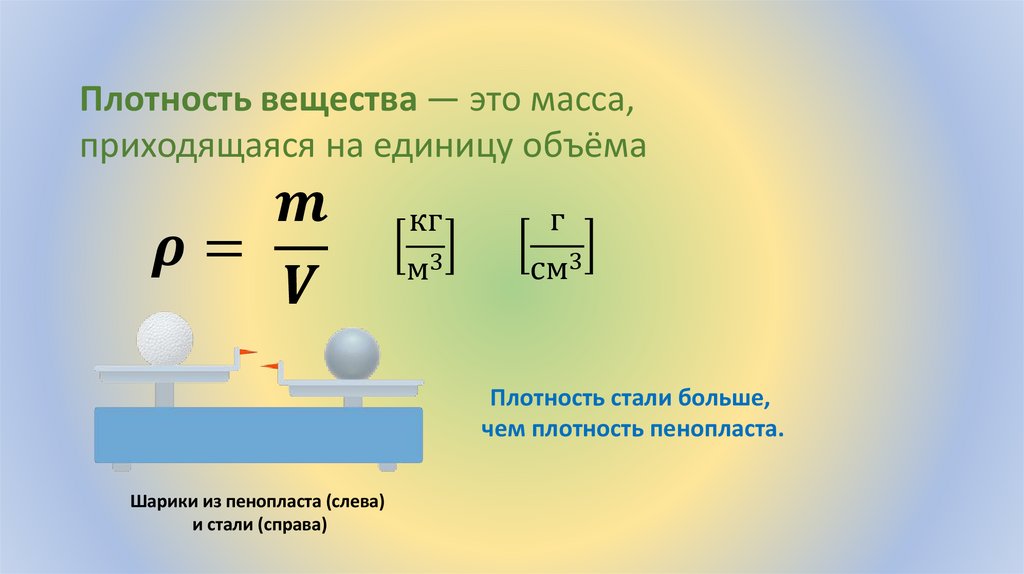 Плотность вещества — это масса,приходящаяся на единицу объёма