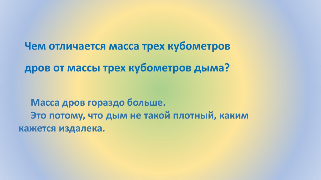 Чем отличается масса трех кубометровдров от массы трех кубометров дыма?