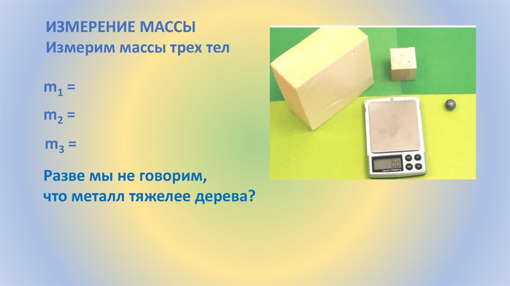 ИЗМЕРЕНИЕ МАССЫИзмерим массы трех тел