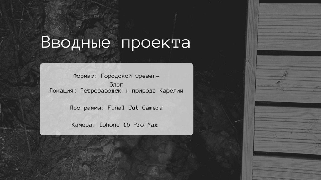 Вводные проектаФормат: Городской тревелблог